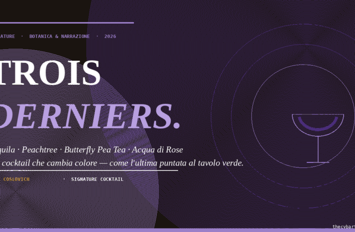 Tequila, Peachtree, lime e Butterfly Pea Tea: un cocktail che cambia colore nel bicchiere, dal blu al viola, come le ultime tre puntate al tavolo della roulette. Un drink costruito sulla tensione dell’ultimo secondo — e su una pianta protetta dall’Arca del Gusto di Slow Food.